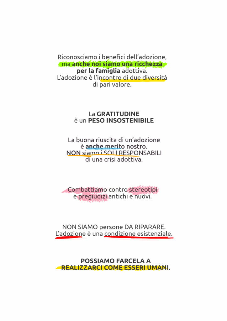 - Perché è tempo che gli adottati siano al centro del dibattito come protagonisti e contributori competenti nella propria esperienza.